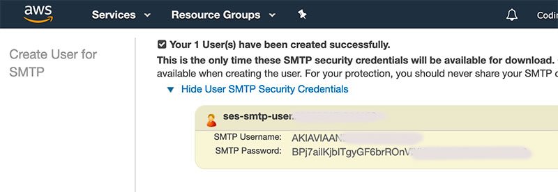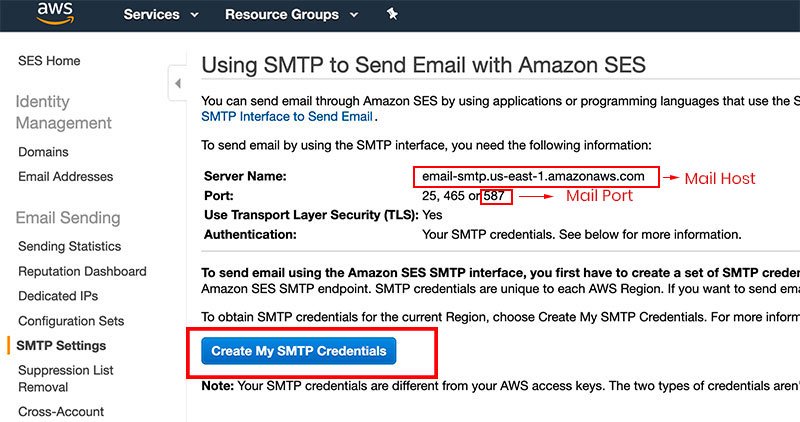 Mail Host: email-smtp.us-east-1.amazonaws.com